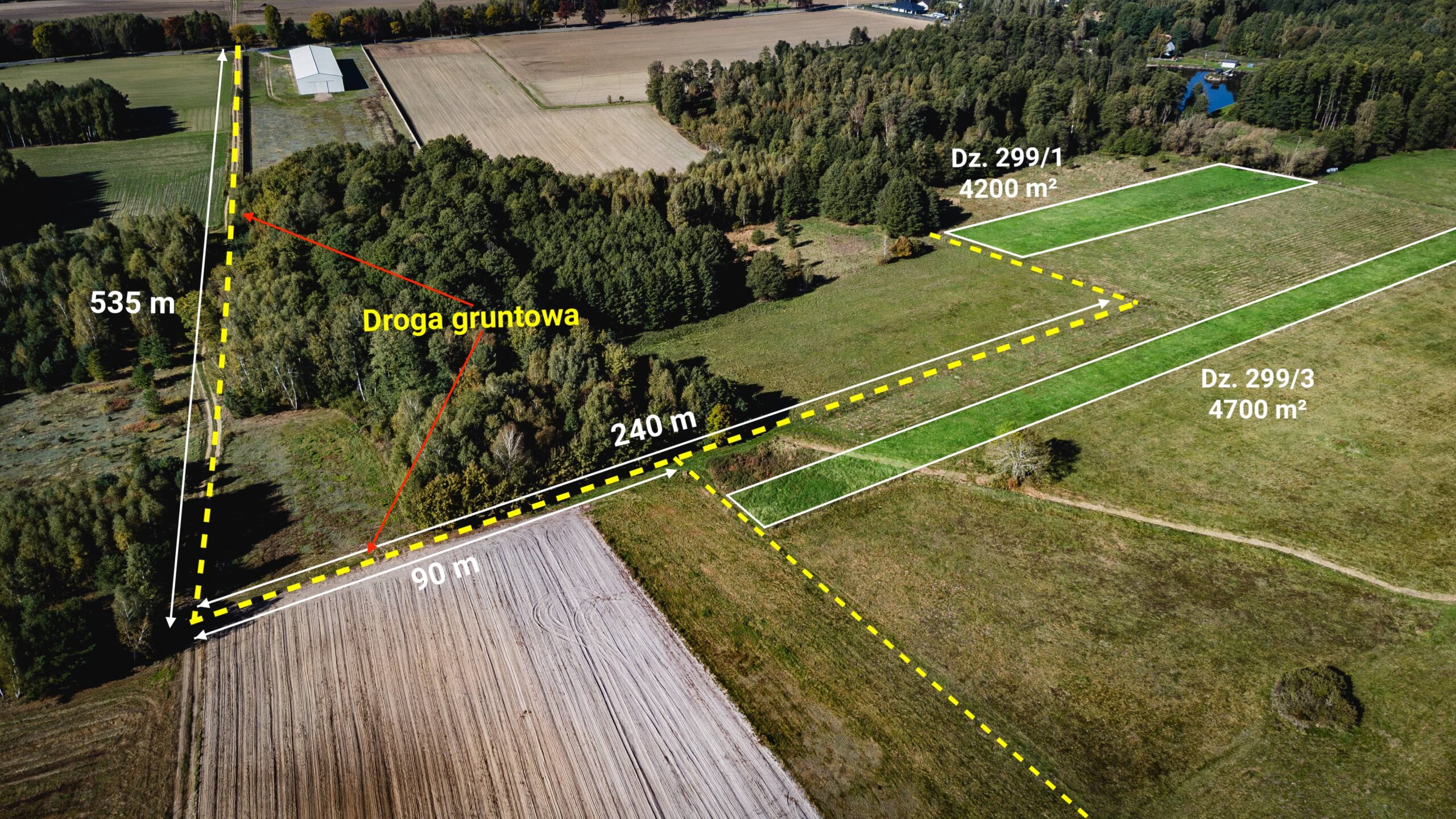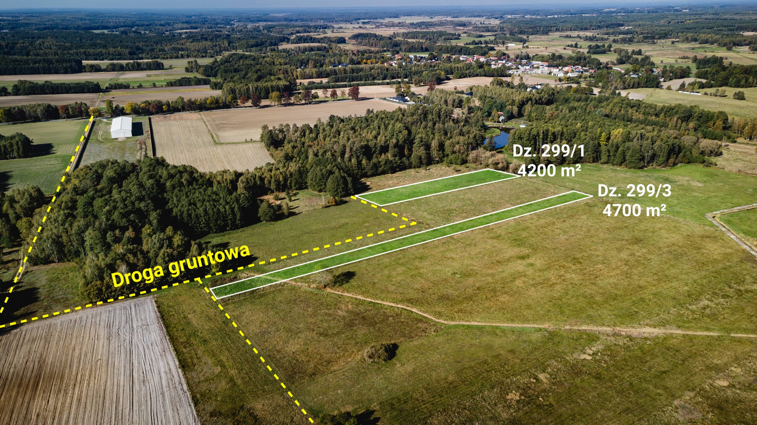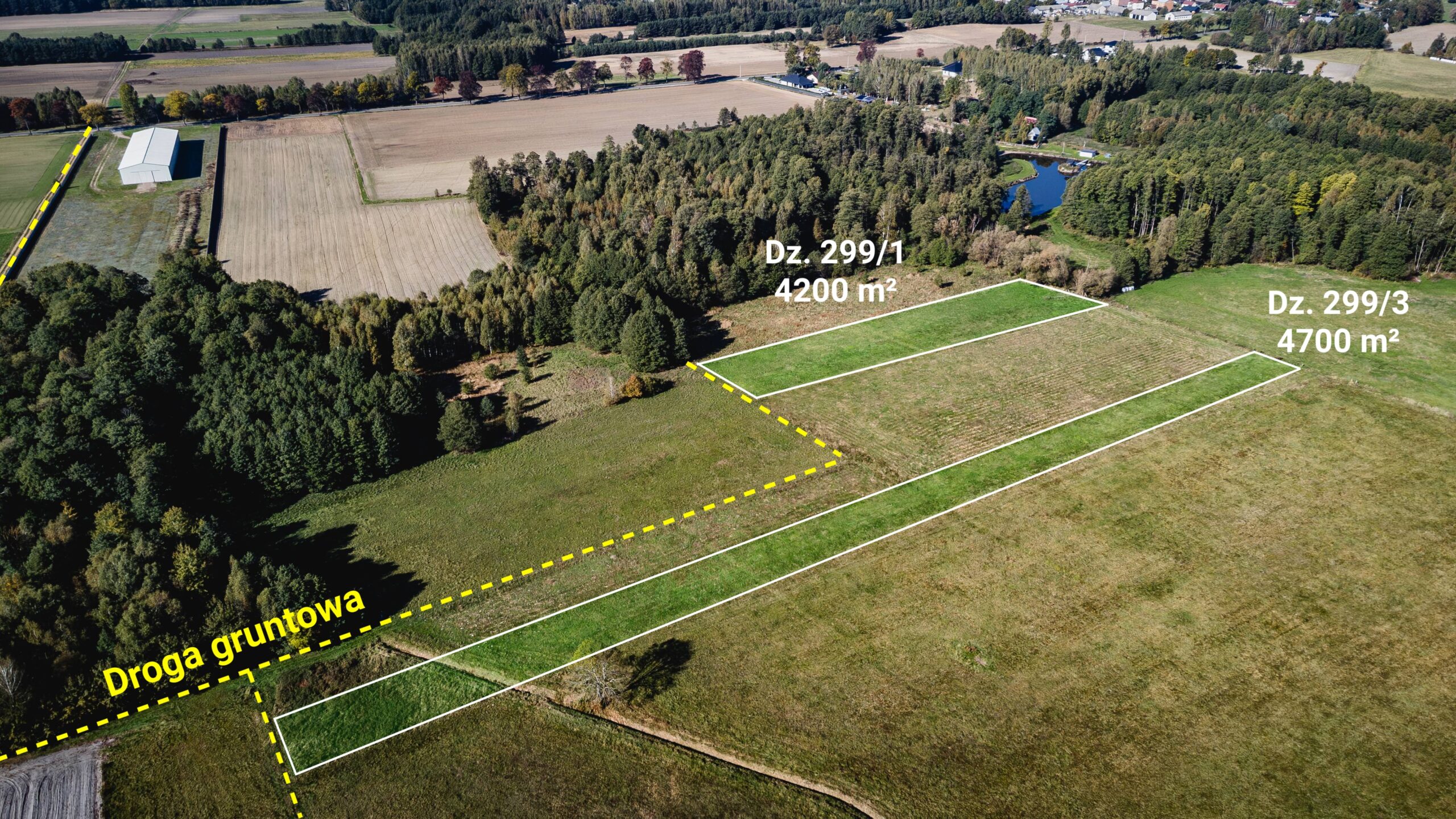 UWAGA!! W tej lokalizacji posiadamy na sprzedaż również działkę nr 299/3 o powierzchni 4700 m² za cenę 15.500 zł widoczną na zdjęciach i w załączonej tabeli.